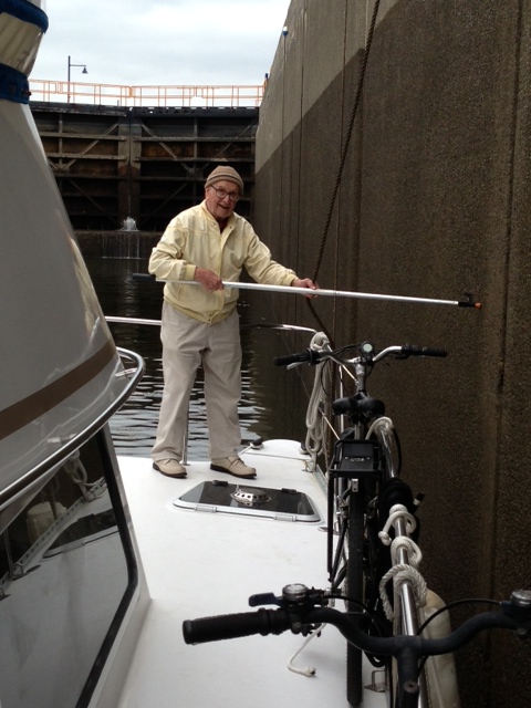 My Dad fending off in the Troy Lock on the Hudson River