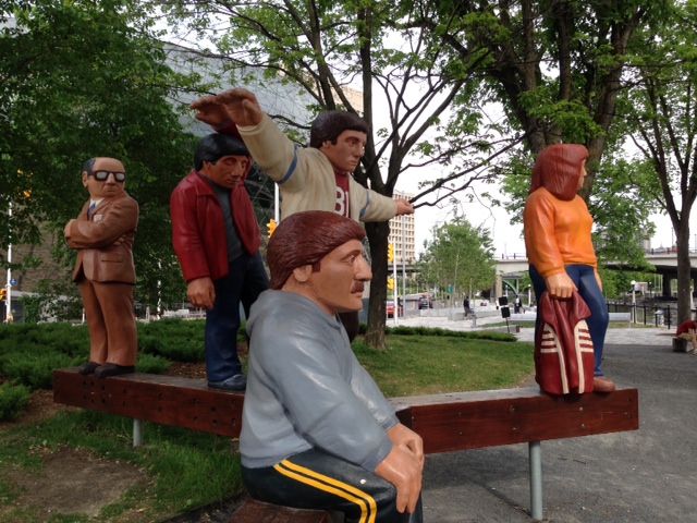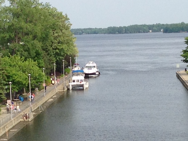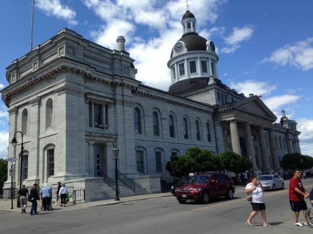 Kingston is a beautiful city with great architecture and what seems to be a vibrant economy. It grew up based on the military and support services for the military and its location as a transportation hub. Shipbuilding was a major industry, and when railroads came into being, the city turned to trains – over 3,000 locomotives were built here. Today, the city thrives as a college town with three major universities (the Royal Military College and Queens University being the most well-known). There is a great deal of activity in the city. On Saturday there was an all-day music festival, followed by a concert/exhibition in the retail/restaurant district featuring a brass band, an acrobat, belly dancers, and two fire-eating performers. Some pictures from our stay in Kingston: