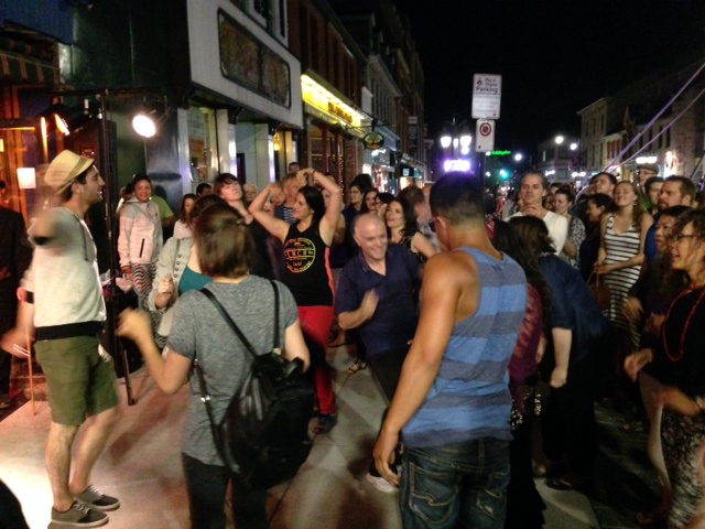 Dancing in the street to the four-piece brass band