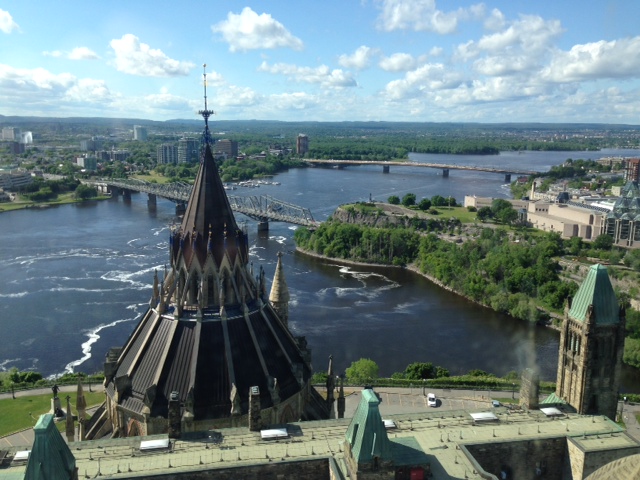 So we have spent the last 4 days exploring Kingston, Ontario – a vibrant city with a strong military history. The city is strategically located at the confluence of three waterways that were critical for transportation and defense in colonial times – Lake Ontario, the St. Lawrence River, and the Rideau Canal. In fact, Kingston was considered by the British to be the most important defensive position in all of Canada. It was primarily a French-speaking area until British royalist settlers flooded the area to escape the newly-independent 13 American colonies in 1783. As a result, the name was changed to King’s Town (later shortened to Kingston) to demonstrate loyalty to King George. A series of fortifications were built between 1832 and around 1850, during which time the British were quite concerned about a possible invasion by the Americans, who tried unsuccessfully to invade in several locations during the War of 1812. It’s interesting to learn history here from the Canadian’s point of view – Americans were the aggressors in the War of 1812 and were successfully repelled from Canada, and Americans were the potential aggressors for the next 40 years – kept at bay by the defenses and strength of the Canadian military. Three fortifications were built in the Kingston area at that time, the most prominent being Fort Henry, built between 1832 and 1837, and several Martello towers – round stone fortifications in strategic locations. Additional fortifications were built in the mid 1840’s when relations with Canada worsened over a dispute regarding the border of the Oregon territory. Tensions eased when that dispute was resolved in 1846, but more fortifications were added in 1862-1863 as tensions again arose during the American Civil War. However, by 1870, relations between the two countries became friendly, and the decline in manning of the fortifications was underway. Today, the military history of Kingston is prominently displayed and is part of the fabric of the city. Here are some pictures: