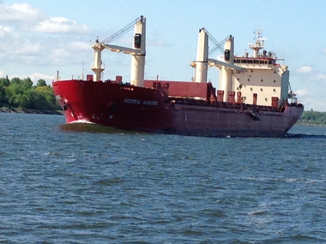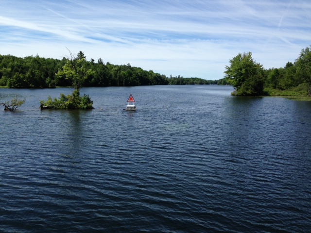 The primary tools we use for navigation are a Garmin chart plotter/radar with a touchscreen, and paper charts. For safety, we have redundancy – two older GPS units plus a hand-held GPS unit, plus we recently put a Garmin App on an IPAD. We have a full set of paper charts on board for everyplace we plan to go. Even so, we had a challenge on the Ottawa River. The chips in our electronic devices did not cover a section of the Ottawa River. Since we have paper charts and have experience navigating that way, we decided not to buy the extra chip (for $150) that covers all of upper Canada for that one little portion of the river, but decided that we would use the paper charts for that area (the old fashioned way). What we didn’t know, however, is that since we were on the river so early in the season, none of the aids to navigation would be in place yet. The river is quite wide in places with a lot of shoaling, so the channel meanders all over the place between the wide banks. With few natural features to use for identification, it was challenging at times to pick our way forward and stay in the unmarked channel.
