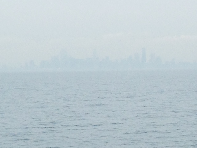 It was hazy, hot, and humid as we approached Chicago – this picture was taken from about 5 miles out – if you look closely, you’ll see the Chicago skyline