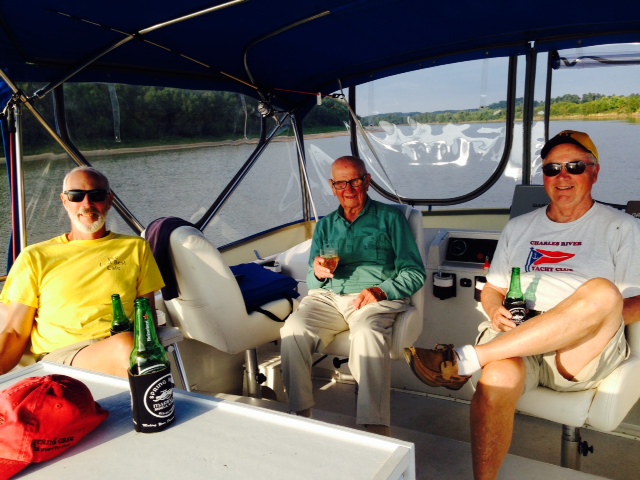 Happy hour on the bridge after the anchor was set, celebrating our completion of the Mississippi River run