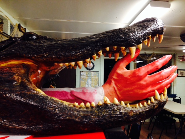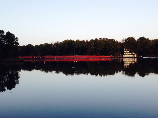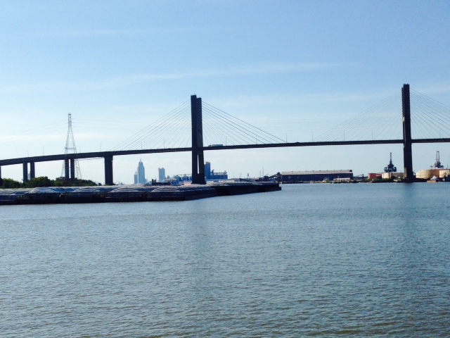This is the third alligator we’ve seen so far – the other two were live along the Black Warrior-Tombigbee Waterway, and were enormous – they looked to be about 12-14 feet long. They quietly slinked from the riverbank into the water as we passed by. This one stayed put.