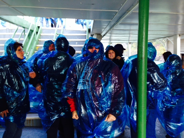 Donning the raincoats (I use the term lightly…) on the Maid of the Mist. Between the wind and the spray next to the Falls, I’m not sure the raincoats did much good…but we sure looked the part –