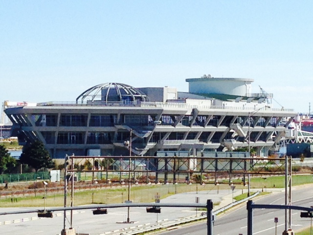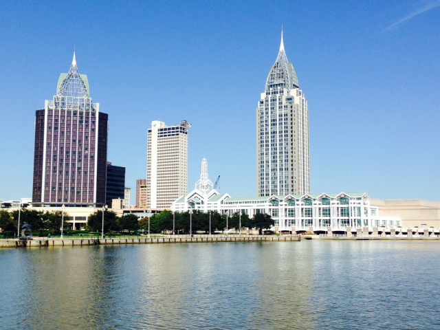 Dramatic, modern architecture marks the design of several of the new buildings on the skyline of the city. This one, however, hasn’t panned out as envisioned – it is a new cruise ship terminal, designed to entice cruise ships to stop here. However, with New Orleans a short distance away, the cruise ships continue to bypass Mobile. It is now being converted into a Maritime Museum, scheduled to open next year.